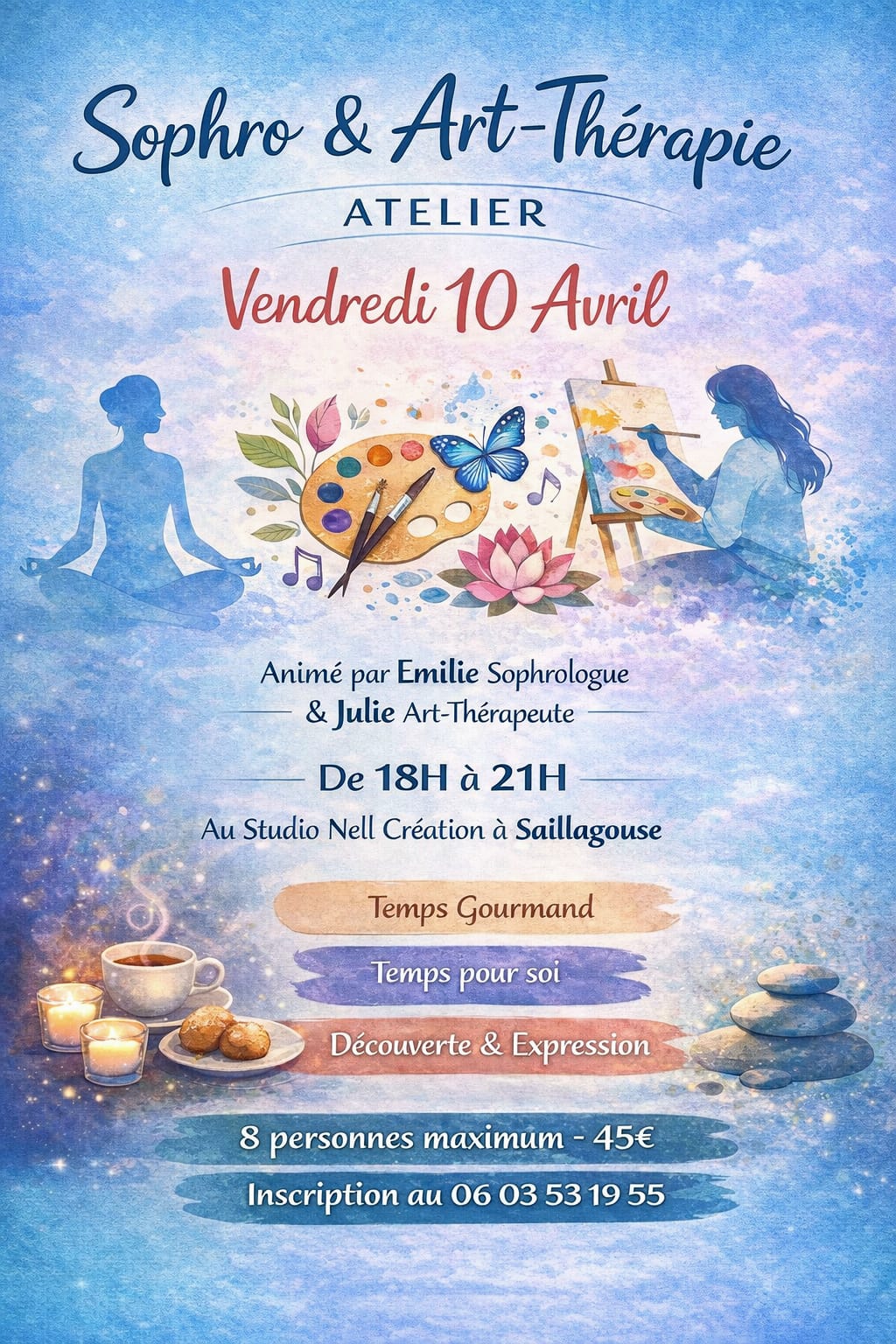Plongez dans un moment de douceur et de créativité avec cet atelier mêlant sophrologie et art-thérapie. À travers des exercices de relaxation, de respiration et d’expression artistique, vous serez invité(e) à vous reconnecter à vous-même, libérer vos émotions et stimuler votre imagination. Dans une ambiance bienveillante et apaisante, accordez-vous une parenthèse hors du temps, propice au lâcher-prise, au plaisir de créer et au ressourcement intérieur. Aucune expérience artistique n’est nécessaire, seulement l’envie de prendre soin de soi.